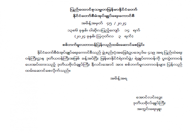 မြန်မာနိုင်ငံအမျိုးသမီးရေးရာအဖွဲ့ချုပ် သဘောထားထုတ်ပြန်ချက်