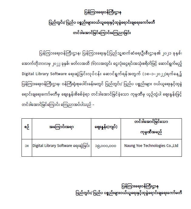 ဝန်ကြီးဌာန ကြေညာချက်များ