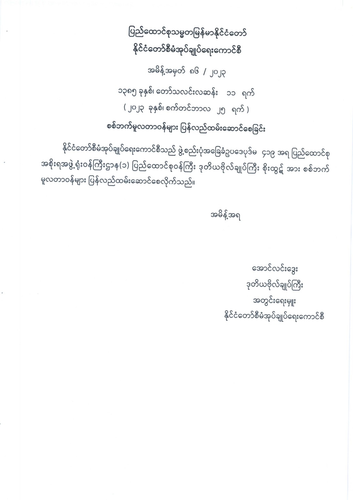 ဝန်ကြီးဌာန ကြေညာချက်များ