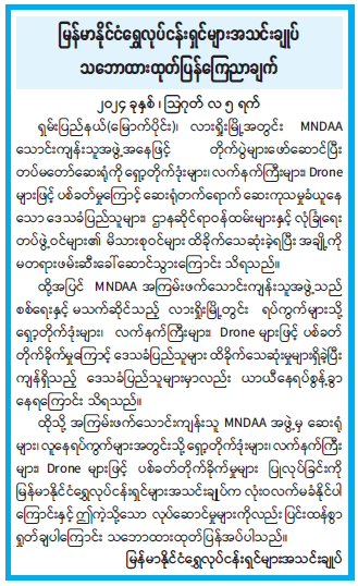 နိုင်ငံတော်အစိုးရ၏ ကြေညာချက်များ