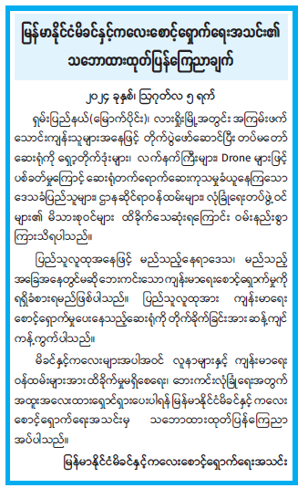 နိုင်ငံတော်အစိုးရ၏ ကြေညာချက်များ