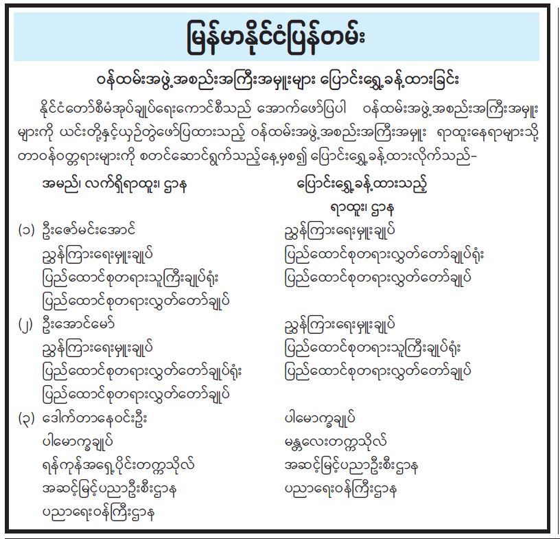 ဝန်ထမ်းအဖွဲ့အစည်းအကြီးအမှူးများ ပြောင်းရွှေ့ခန့်ထားခြင်း