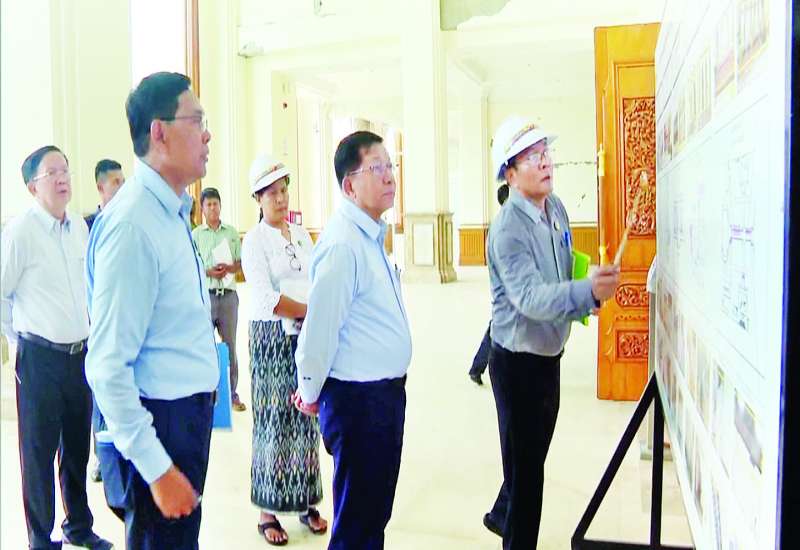 နိုင်ငံတော်စီမံအုပ်ချုပ်ရေးကောင်စီဥက္ကဋ္ဌ နိုင်ငံတော်ဝန်ကြီးချုပ် ဗိုလ်ချုပ်မှူးကြီး မင်းအောင်လှိုင်သည် ကောင်စီအတွင်းရေးမှူး ဗိုလ်ချုပ်ကြီး အောင်လင်းဒွေး၊ ကောင်စီတွဲဖက်အတွင်းရေးမှူး ဗိုလ်ချုပ်ကြီး ရဲဝင်းဦးနှင့် အဖွဲ့ဝင်များလိုက်ပါ၍ ယနေ့မွန်းလွဲပိုင်းတွင် ပြည်ထောင်စုနယ်မြေနေပြည်တော်ရှိ လွှတ်တော်အဆောက်အဦများတွင် မန္တလေးငလျင်ကြီးဘေးဒဏ်ကြောင့် ထိခိုက်ပျက်စီးမှုများဖြစ်ပေါ်ခဲ့မှုများကို ပြန်လည်ပြုပြင်ရေးလုပ်ငန်း ဆောင်ရွက်နေမှုများအား သွားရောက်ကြည့်ရှုစစ်ဆေးပြီး လိုအပ်သည်များ လမ်းညွှန်မှာကြားသည်။