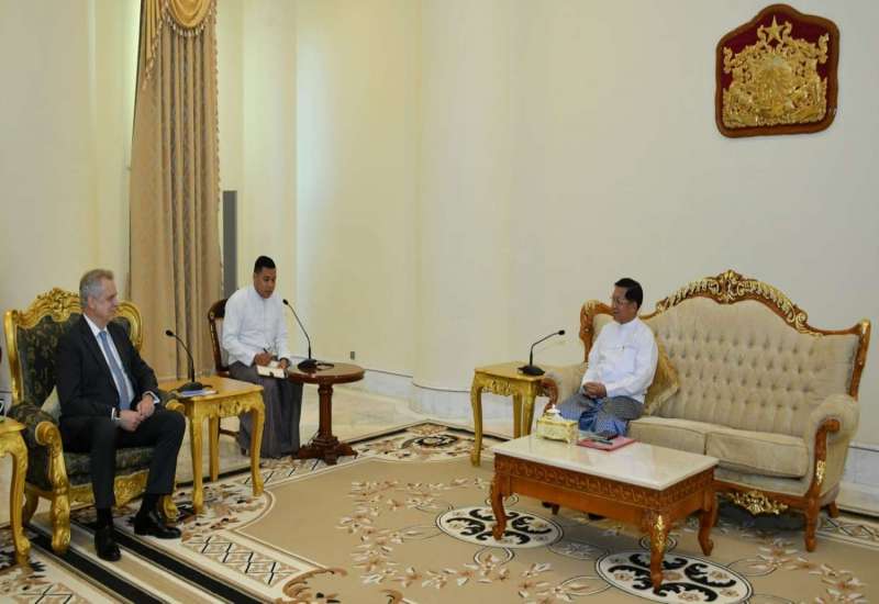 နိုင်ငံတော်စီမံအုပ်ချုပ်ရေးကောင်စီဥက္ကဋ္ဌ နိုင်ငံတော်ဝန်ကြီးချုပ် ဗိုလ်ချုပ်မှူးကြီး မင်းအောင်လှိုင်ထံ ရုရှားဖက်ဒေရေးရှင်းနိုင်ငံ၊ စိန့်ပီတာစဘတ်အစိုးရအဖွဲ့ဝင် ပြည်ပဆက်ဆံရေးကော်မတီဥက္ကဋ္ဌ Mr. Grigoriev Evgeny Dmitrievich ဦးဆောင်သည့် ကိုယ်စားလှယ်အဖွဲ့က ယနေ့မွန်းလွဲပိုင်းတွင် နေပြည်တော်ရှိ နိုင်ငံတော်စီမံအုပ်ချုပ်ရေးကောင်စီဥက္ကဋ္ဌရုံး ဧည့်ခန်းမ၌ လာရောက်ဂါရဝပြုတွေ့ဆုံသည်။