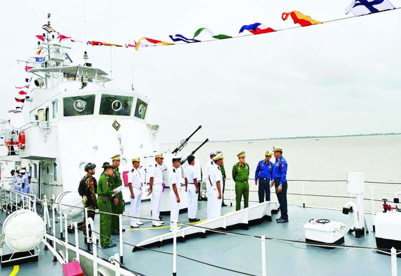 မြန်မာ့ပင်လယ်ပြင်နှင့် ရေကြောင်းအကျိုးစီးပွားများ၊ ပင်လယ်ပြာစီးပွားရေး လုပ်ငန်းများအား ကာကွယ်စောင့်ရှောက်ရန်၊ ရေကြောင်းလုံခြုံရေးဆိုင်ရာ ခြိမ်းခြောက်မှုများအား တားဆီးကာကွယ်ရန်၊ ပင်လယ်ပြင်တရားဥပဒေစိုးမိုးရေးနှင့် လူသားချင်းစာနာမှု အထောက်အကူပေးရေး လုပ်ငန်းများဆောင်ရွက်ရန်၊ အရေးပေါ်အချိန်တွင် တပ်မတော်(ရေ)အား အထောက်အကူပြုနိုင်ရန်စသည့် ရည်မှန်းချက်တာဝန်များကို ထမ်းဆောင်နိုင်ရေးအတွက် မြန်မာနိုင်ငံကမ်းခြေစောင့်တပ်ဖွဲ့ကို ၂၀၂၁ အောက်တိုဘာ ၆ ရက်တွင် စတင်ဖွဲ့စည်းခဲ့ပြီး တပ်ဖွဲ့ဖွဲ့စည်းခြင်း ၂ နှစ်မြောက် နှစ်ပတ်လည်နေ့ တွေ့ဆုံပွဲအခမ်းအနားကို ယနေ့တွင်ကျင်းပ ပြုလုပ်ရာ နိုင်ငံတော်စီမံအုပ်ချုပ်ရေးကောင်စီဥက္ကဋ္ဌ တပ်မတော်ကာကွယ်ရေးဦးစီးချုပ် ဗိုလ်ချုပ်မှူးကြီး မင်းအောင်လှိုင် တက်ရောက်ဂုဏ်ပြု အမှာစကားပြောကြားသည်။