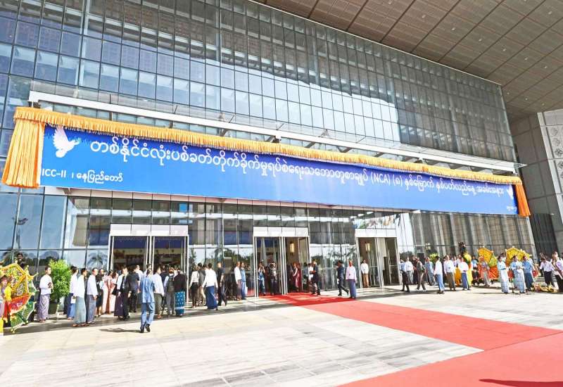 တစ်နိုင်ငံလုံးပစ်ခတ်တိုက်ခိုက်မှုရပ်စဲရေးသဘောတူစာချုပ် (NCA) (၈) နှစ်မြောက် နှစ်ပတ်လည်နေ့ အခမ်းအနားကို ယနေ့နံနက်ပိုင်းတွင် နေပြည်တော်ရှိ မြန်မာအပြည်ပြည်ဆိုင်ရာ ကွန်ဗင်းရှင်းဗဟိုဌာန (၂) (MICC – II) ၌ ကျင်းပပြုလုပ်ရာ နိုင်ငံတော်စီမံအုပ်ချုပ်ရေးကောင်စီဥက္ကဋ္ဌ နိုင်ငံတော်ဝန်ကြီးချုပ် အမျိုးသားစည်းလုံးညီညွတ်ရေးနှင့် ငြိမ်းချမ်းရေးဖော်ဆောင်မှု ဗဟိုကော်မတီဥက္ကဋ္ဌ တပ်မတော်ကာကွယ်ရေးဦးစီးချုပ် ဗိုလ်ချုပ်မှူးကြီး မင်းအောင်လှိုင် တက်ရောက်မိန့်ခွန်းပြောကြားသည်။