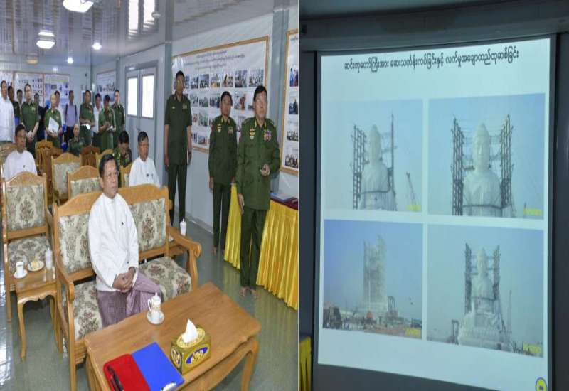 ပြည်ထောင်စုနယ်မြေ၊ နေပြည်တော်၊ ဒက္ခိဏသီရိမြို့နယ်ရှိ မာရဝိဇယဗုဒ္ဓဥယျာဉ်တော်အတွင်း တည်ထားကိုးကွယ်ရန်ဆောင်ရွက်လျက်ရှိသည့် မာရဝိဇယဗုဒ္ဓရုပ်ပွားတော်မြတ်ကြီး တည်ဆောက်ပြီးစီးနေမှုအခြေအနေများကို နိုင်ငံတော်စီမံအုပ်ချုပ်ရေးကောင်စီဥက္ကဋ္ဌ နိုင်ငံတော်ဝန်ကြီးချုပ်သည် တာဝန်ရှိသူများလိုက်ပါ၍ ယနေ့နံနက်ပိုင်းတွင် သွားရောက်ကြည့်ရှုစစ်ဆေးသည်။