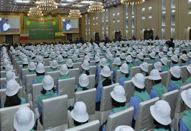 နိုင်ငံတော်စီမံအုပ်ချုပ်ရေးကောင်စီဥက္ကဋ္ဌ နိုင်ငံတော်ဝန်ကြီးချုပ် ဗိုလ်ချုပ်မှူးကြီးမင်းအောင်လှိုင်သည် ပြည်ထောင်စုတိုင်းရင်းသားလူမျိုးများဖွံ့ ဖြိုးရေးတက္ကသိုလ် ပညာရေးဘွဲ့ ၅ နှစ်သင်တန်း အမှတ်စဉ် (၅) ကျောင်းသား၊ ကျောင်းသူများကို ယနေ့မွန်းလွဲပိုင်းတွင် နိုင်ငံတော်စီမံအုပ်ချုပ်ရေးကောင်စီဥက္ကဋ္ဌရုံး၊ ငုရွှေဝါခန်းမ၌တွေ့ဆုံ အမှာစကားပြောကြားသည်။