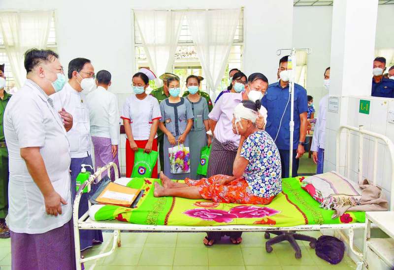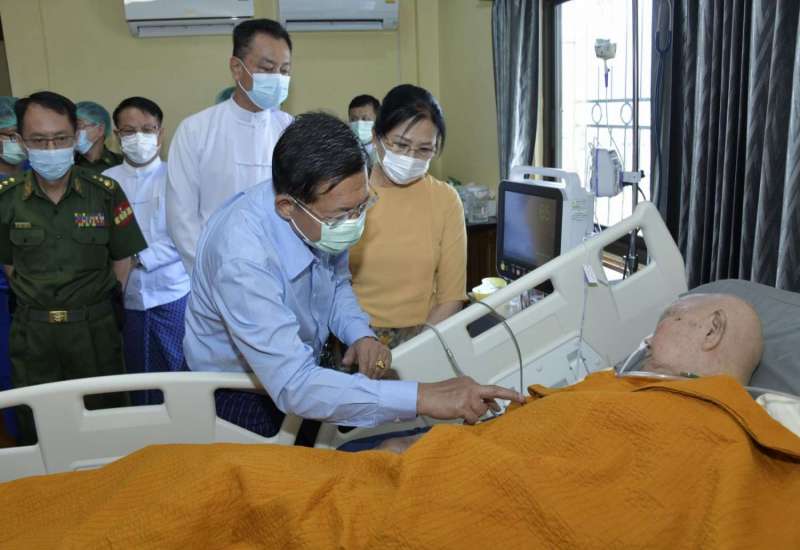 ရှမ်းပြည်နယ် (အရှေ့ပိုင်း)၊ တာချီလိတ်မြို့၊ နဂါးနှစ်ကောင်ကျောင်းတိုက်ပဓာနနာယက နိုင်ငံတော်ဩဝါဒါစရိယ အဘိဓဇမဟာရဋ္ဌဂုရု အဘိဓဇအဂ္ဂမဟာသဒ္ဓမ္မဇောတိက အဂ္ဂမဟာပဏ္ဍိတ ဒေါက်တာဘဒ္ဒန္တဓမ္မသီရိအား ကျန်းမာရေးစောင့်ရှောက်မှုပေးထားသည့် အခြေအနေများကို နိုင်ငံတော်စီမံအုပ်ချုပ်ရေးကောင်စီဥက္ကဋ္ဌ နိုင်ငံတော်ဝန်ကြီးချုပ် ဗိုလ်ချုပ်မှူးကြီးမင်းအောင်လှိုင်သည် ဇနီးဒေါ်ကြူကြူလှနှင့် တာဝန်ရှိသူများလိုက်ပါ၍ ယနေ့နံနက်ပိုင်းတွင် သွားရောက်ကြည့်ရှုသည်။