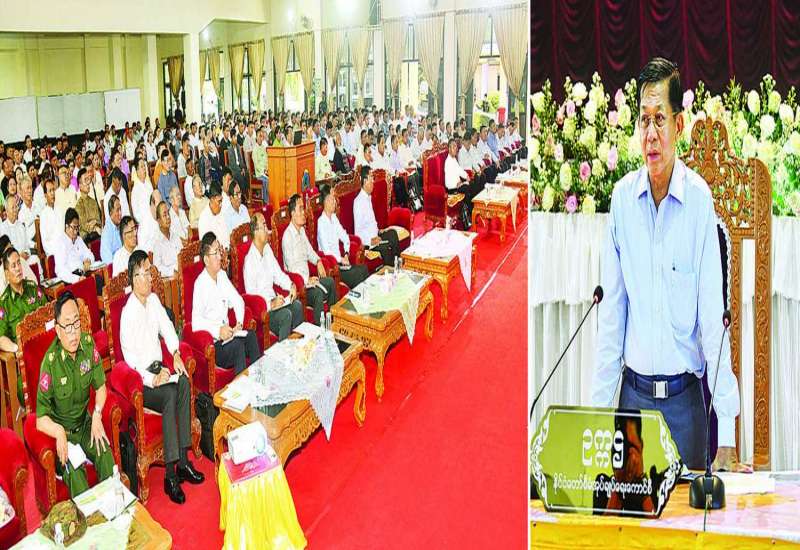 နိုင်ငံတော်စီမံအုပ်ချုပ်ရေးကောင်စီဥက္ကဋ္ဌ နိုင်ငံတော်ဝန်ကြီးချုပ် ဗိုလ်ချုပ်မှူးကြီး မင်းအောင်လှိုင်သည် ယနေ့နံနက်ပိုင်းတွင် ရှမ်းပြည်နယ်(အရှေ့ပိုင်း) ကျိုင်းတုံမြို့ရှိ ပြည်နယ်၊ ခရိုင်၊ မြို့နယ်အဆင့် ဌာနဆိုင်ရာတာဝန်ရှိသူများ၊ မြို့မိ၊ မြို့ဖများ၊ အသေးစား၊ အငယ်စားနှင့် အလတ်စား စီးပွားရေး (MSME)လုပ်ငန်းရှင်များအား ကျိုင်းတုံမြို့ မြို့တော်ခန်းမ၌ တွေ့ဆုံ၍ ဒေသဖွံ့ဖြိုးတိုးတက်ရေး ဆိုင်ရာများကို ဆွေးနွေးပြောကြားသည်။