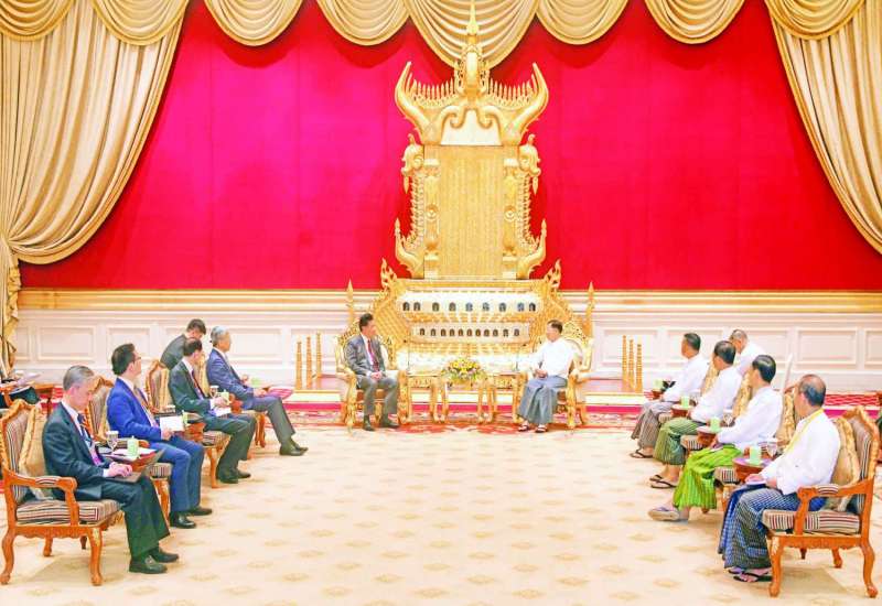 နိုင်ငံတော်စီမံအုပ်ချုပ်ရေးကောင်စီဥက္ကဋ္ဌ နိုင်ငံတော်ဝန်ကြီးချုပ် ဗိုလ်ချုပ်မှူးကြီးမင်းအောင်လှိုင်သည် The Elders အဖွဲ့ ဒုတိယဥက္ကဋ္ဌ၊ ကုလသမဂ္ဂအတွင်းရေးမှူးချုပ်ဟောင်း မစ္စတာဘန်ကီမွန်းအား ယနေ့နံနက်ပိုင်းတွင် နေပြည်တော်ရှိ နိုင်ငံတော်စီမံအုပ်ချုပ်ရေးကောင်စီဥက္ကဋ္ဌရုံး၊ ဧည့်ခန်းမ၌ လက်ခံတွေ့ဆုံသည်။