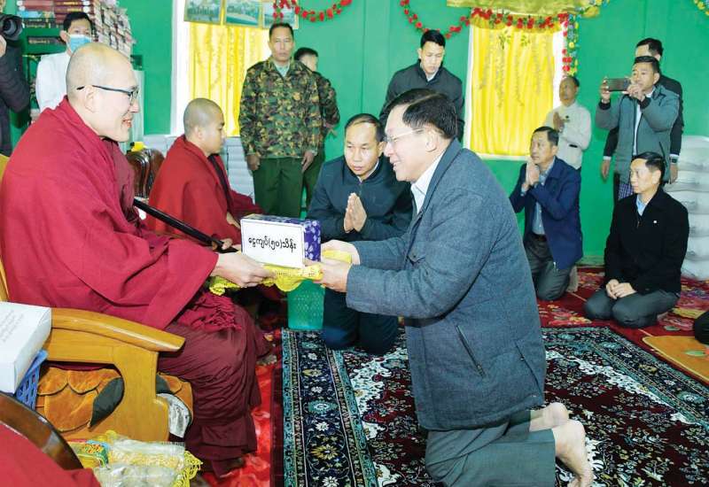 နိုင်ငံတော်စီမံအုပ်ချုပ်ရေးကောင်စီဥက္ကဋ္ဌ နိုင်ငံတော်ဝန်ကြီးချုပ် ဗိုလ်ချုပ်မှူးကြီး မင်းအောင်လှိုင်သည် ယနေ့နံနက်ပိုင်းတွင် ခရီးစဉ်၌လိုက်ပါလာသည့် အဖွဲ့ဝင်များ၊ စစ်ကိုင်းတိုင်းဒေသကြီး ဝန်ကြီးချုပ်၊ အနောက်မြောက်တိုင်းစစ်ဌာနချုပ်တိုင်းမှူး၊ နာဂကိုယ်ပိုင်အုပ်ချုပ်ခွင့်ရဒေသ စီမံအုပ်ချုပ်ရေးအဖွဲ့ဥက္ကဋ္ဌနှင့် တာဝန်ရှိသူများလိုက်ပါ၍ လဟယ်မြို့၊ ထေရဝါဒဗုဒ္ဓသာသနာပြု(ဗဟို)ကျောင်းနှင့် ထေရဝါဒဗုဒ္ဓသာသနာပြု သီလရှင်ကျောင်းတို့သို့သွားရောက်၍ လှူဖွယ်ပစ္စည်းများ ဆက်ကပ်လှူဒါန်းသည်။