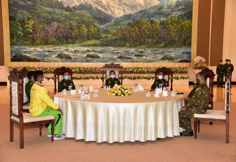 နိုင်ငံတော်စီမံအုပ်ချုပ်ရေးကောင်စီဥက္ကဋ္ဌ တပ်မတော်ကာကွယ်ရေးဦးစီးချုပ် ဗိုလ်ချုပ်မှူးကြီး မင်းအောင်လှိုင်သည် “ဝ”ပြည် သွေးစည်းညီညွတ်ရေးပါတီ (UWSP) ဒုတိယဥက္ကဋ္ဌ ဦးလော့ယာကု၊ အမျိုးသားဒီမိုကရက်တစ်မဟာမိတ်အဖွဲ့ (NDAA) ဒုတိယဥက္ကဋ္ဌ ဦးစန်ပေ့နှင့် ရှမ်းပြည်တိုးတက်ရေးပါတီ (SSPP) ဒုတိယဥက္ကဋ္ဌ(၂) စဝ်ခွန်ဆိုင်တို့ ဦးဆောင်သည့် ငြိမ်းချမ်းရေးကိုယ်စားလှယ်အဖွဲ့အား ယနေ့နံနက်ပိုင်းတွင် နေပြည်တော်ရှိ ဘုရင့်နောင်ရိပ်သာ ဧည့်ခန်းမဆောင်၌ တွေ့ဆုံ၍ ငြိမ်းချမ်းရေးဆိုင်ရာကိစ္စရပ်များ ဆွေးနွေးသည်။
