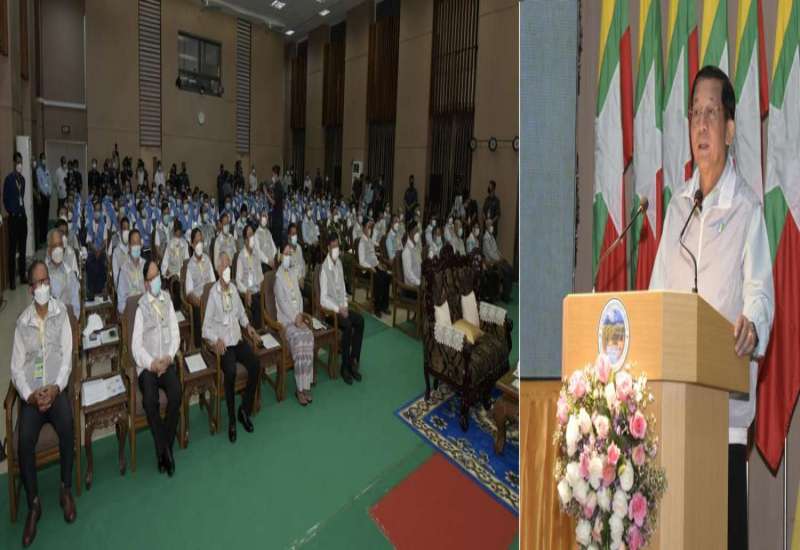 ပူးပေါင်းပါဝင် ဆည်မြောင်းစနစ်ဖြင့် လယ်ယာကဏ္ဍနှင့် တောင်သူတို့၏ လူမှုစီးပွားဘဝ မြှင့်တင်ရေးဆွေးနွေးပွဲ ဖွင့်ပွဲအခမ်းအနားကို ယနေ့နံနက်ပိုင်းတွင် နေပြည်တော်ကောင်စီနယ်မြေ၊ ဇေယျာသီရိမြို့နယ်ရှိ စိုက်ပျိုးရေး၊ မွေးမြူရေးနှင့် ဆည်မြောင်းဝန်ကြီးဌာန၊ စိုက်ပျိုးပညာပေးရေးနှင့် ကျေးလက်ဒေသဖွံ့ဖြိုးရေး သင်တန်းကျောင်း၌ ကျင်းပပြုလုပ်ရာ နိုင်ငံတော်စီမံအုပ်ချုပ်ရေးကောင်စီဥက္ကဋ္ဌ နိုင်ငံတော်ဝန်ကြီးချုပ် ဗိုလ်ချုပ်မှူးကြီးမင်းအောင်လှိုင် တက်ရောက်အမှာစကား ပြောကြားသည်။