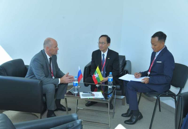 ရုရှားဖက်ဒရေးရှင်းနိုင်ငံသို့ ရောက်ရှိနေသည့် နိုင်ငံတော်စီမံအုပ်ချုပ်ရေးကောင်စီဥက္ကဋ္ဌ နိုင်ငံတော်ဝန်ကြီးချုပ် ဗိုလ်ချုပ်မှူးကြီး မင်းအောင်လှိုင်သည် ရုရှားဖက်ဒရေးရှင်းနိုင်ငံ သမ္မတ၏အကြံပေးနှင့် ဖိုရမ်ဖြစ်မြောက်ရေးကော်မတီ အထူးအတွင်းရေးမှူး Mr. Anton Kobyakov နှင့် ယနေ့ဒေသစံတော်ချိန် ညနေပိုင်းတွင် ရုရှားဖက်ဒရေးရှင်းနိုင်ငံ၊ ဗလာဒီဗော့စတော့ခ်မြို့၊ FEFU Campus အတွင်း၌ တွေ့ဆုံ ဆွေးနွေးသည်။