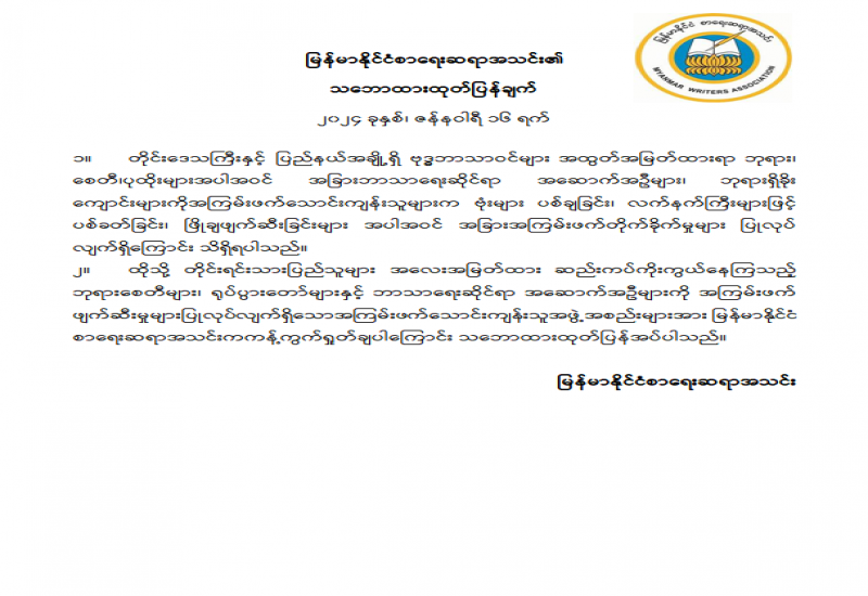 ၁။ တိုင်းဒေသကြီးနှင့် ပြည်နယ်အချို့ရှိ ဗုဒ္ဓဘာသာဝင်များ အထွတ်အမြတ်ထားရာ ဘုရား၊ စေတီ၊ ပုထိုးများအပါအဝင် အခြားဘာသာရေးဆိုင်ရာ အဆောက်အဦများ၊ ဘုရားရှိခိုး ကျောင်းများကိုအကြမ်းဖက်သောင်းကျန်းသူများက ဗုံးများပစ်ချခြင်း၊ လက်နက်ကြီးများဖြင့် ပစ်ခတ်ခြင်း၊ ဖြိုချဖျက်ဆီးခြင်းများအပါအဝင် အခြားအကြမ်းဖက်တိုက်ခိုက်မှုများ ပြုလုပ် လျက်ရှိကြောင်း သိရှိရပါသည်။