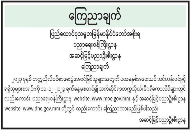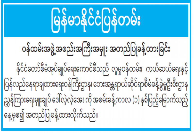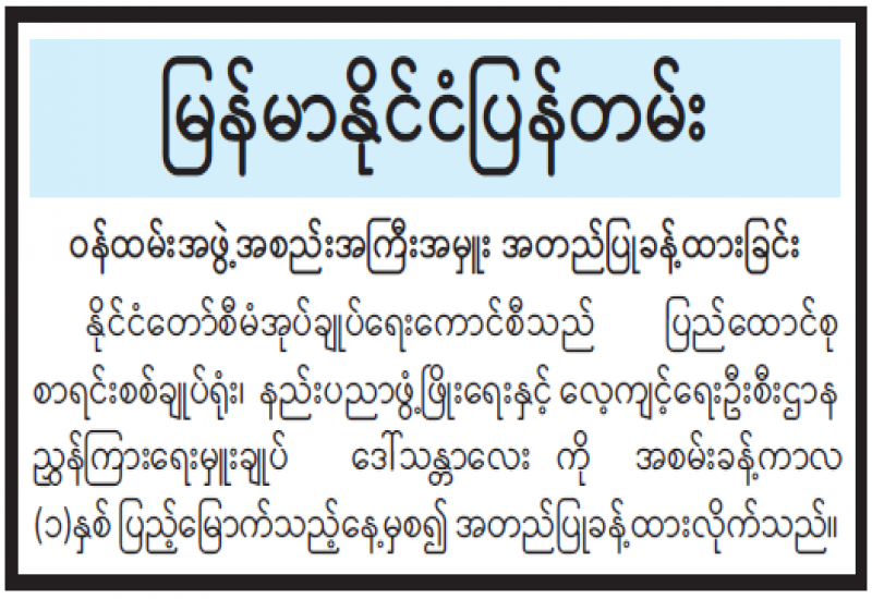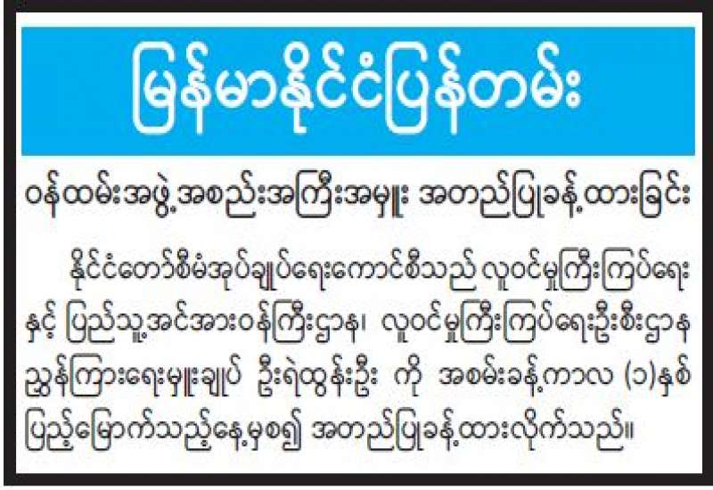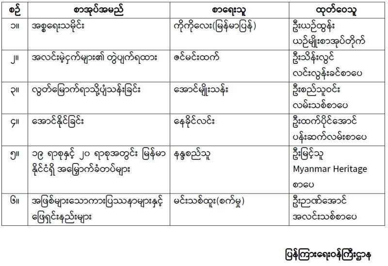 ၂၀၁၄ ခုနှစ်၊ ပုံနှိပ်ခြင်းနှင့်ထုတ်ဝေခြင်းလုပ်ငန်းဥပဒေ၊ နည်းဥပဒေများအရ ထုတ်ဝေသူများသည် မိမိတို့ထုတ်ဝေသည့် စာအုပ်စာစောင် ၅ အုပ် သို့မဟုတ် ၅ စောင်ကို ပြန်ကြားရေးဝန်ကြီးဌာနသို့ အဖိုးအခလွတ်ပေးအပ်ရမည်ဖြစ်ပါသည်။