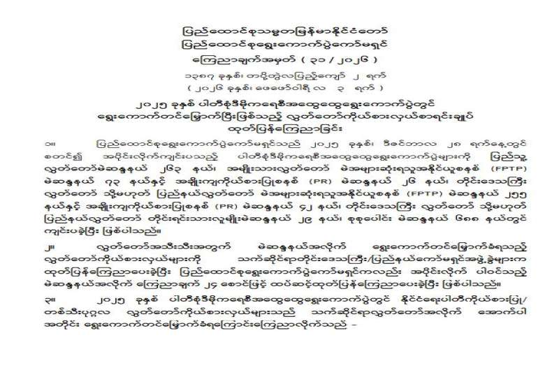 တိုင်းဒေသကြီးလွှတ်တော် သို့မဟုတ် ပြည်နယ်လွှတ်တော်ကိုယ်စားလှယ်အဖြစ် ရွေးကောက်တင်မြှောက်ခံရသူများ အမည်စာရင်းကြေညာခြင်း