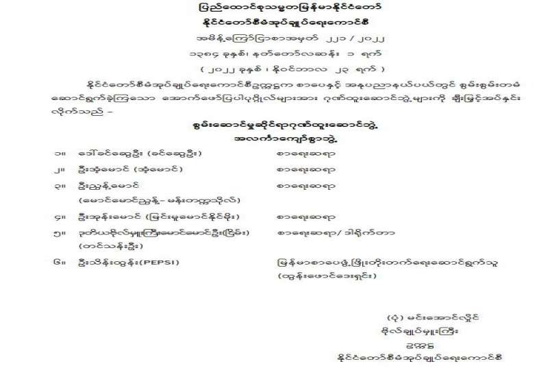 ကိုဗစ်-၁၉ ရောဂါပိုးကူးစက်ပျံ့နှံ့မှုကို ဆက်လက်ထိန်းချုပ်ဆောင်ရွက်ရန် လိုအပ်ပါသဖြင့် ပြည်ထောင်စုအဆင့်အဖွဲ့အစည်းများ၊ ပြည်ထောင်စုဝန်ကြီးဌာနများမှ ကိုဗစ်-၁၉ ရောဂါကာကွယ်၊ ထိန်းချုပ်၊ တားဆီးရေးအတွက် ၂၀၂၂ ခုနှစ်၊ နိုဝင်ဘာလ ၃၀ ရက်နေ့အထိ ထုတ်ပြန်ထားသော ပြည်သူသို့ပန်ကြားချက်၊ အမိန့်၊ အမိန့်ကြော်ငြာစာ၊ ညွှန်ကြားချက်များ (ဖြေလျှော့ပေးမည့် ကိစ္စရပ်များမပါ)အား ၂၀၂၂ ခုနှစ်၊ ဒီဇင်ဘာလ ၃၁ ရက်နေ့အထိ ရက်တိုးမြှင့် သတ်မှတ်ဆောင်ရွက်ထားပါကြောင်း အသိပေးကြေညာအပ်ပါသည်။