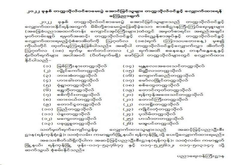 ၂၀၂၂ ခုနှစ် တက္ကသိုလ်ဝင်စာမေးပွဲ အောင်မြင်သူများ တက္ကသိုလ်ဝင်ခွင့် လျှောက်ထားရန် ကြေညာချက်