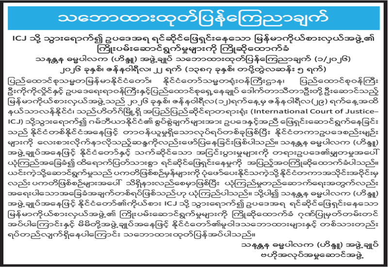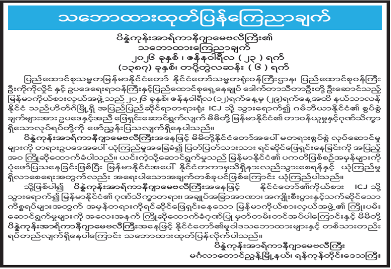 မြန်မာနိုင်ငံခရစ်ယာန်အသင်းတော်များကောင်စီ သဘောထားထုတ်ပြန်ချက်