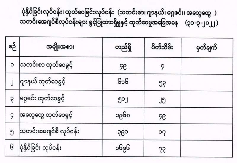 ပုံနှိပ်ခြင်းလုပ်ငန်း၊ ထုတ်ဝေခြင်းလုပ်ငန်း (သတင်းစာ၊ ဂျာနယ်၊ မဂ္ဂဇင်း၊ အထွေထွေ) သတင်းအေဂျင်စီလုပ်ငန်းများ ခွင်ပြုထားရှိမှုနှင့် ထုတ်ဝေမှုအခြေအနေ
