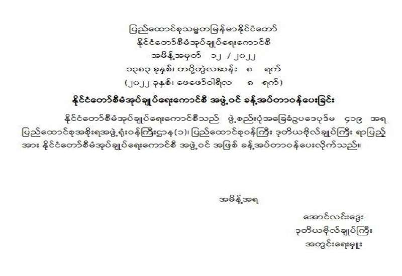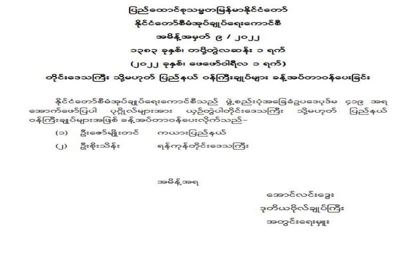 ပြည်ထောင်စုရွေးကောက်ပွဲကော်မရှင် အဖွဲဝင်ခန့်အပ်တာဝန်ပေးခြင်း
