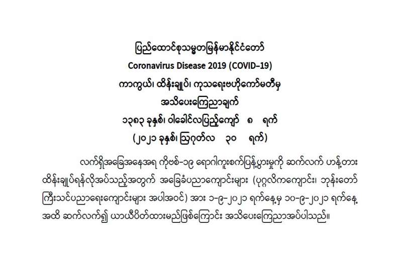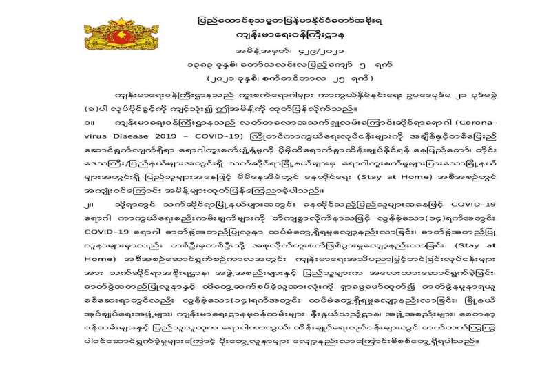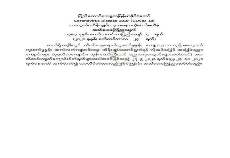 Coronavirus Disease 2019 (COVID-19) ကာကွယ်၊ ထိန်းချုပ်၊ ကုသရေးဗဟိုကော်မတီ အသိပေးကြေညာချက်