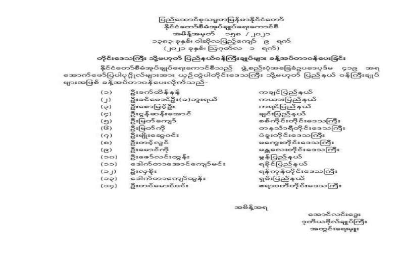 ကိုဗစ်-၁၉ ရောဂါ ကူးစက်ပြန့်ပွားမှုကို ပိုမိုထိရောက်စွာ ကာကွယ်၊ ထိန်းချုပ်၊ ကုသနိုင်ရေးအတွက် အများပြည်သူအလုပ်ပိတ်ရက် တိုးမြှင့်သတ်မှတ်ခြင်း