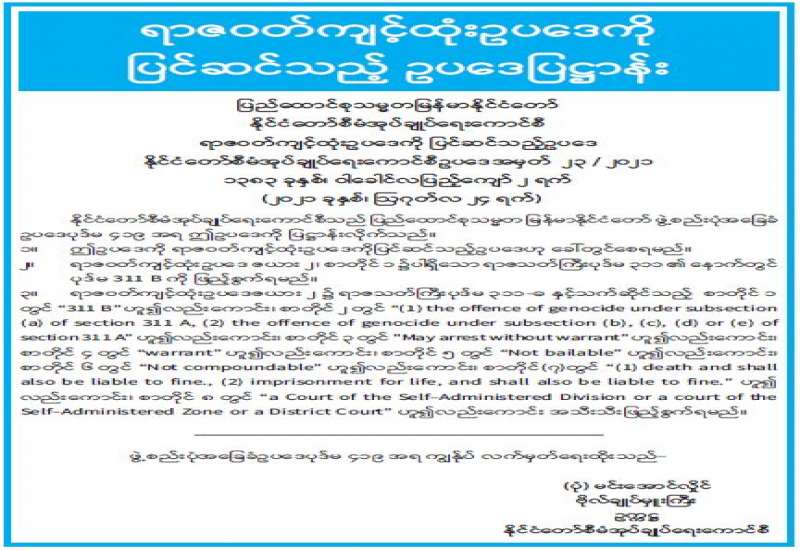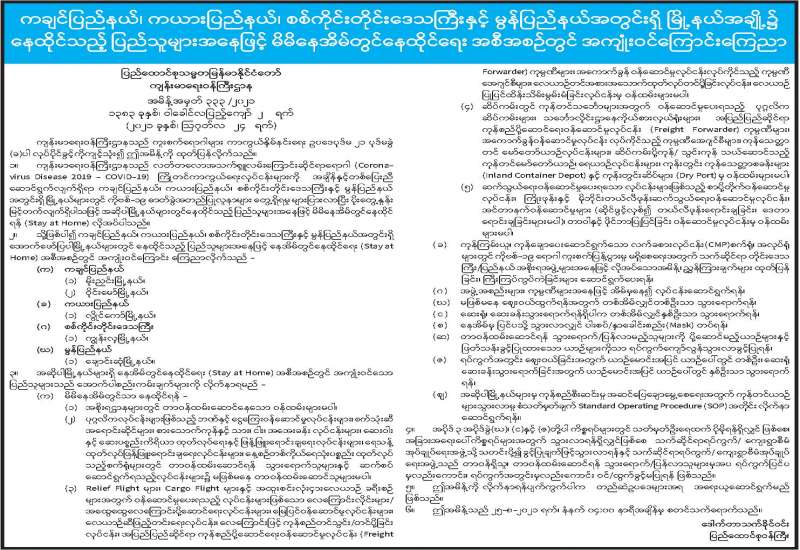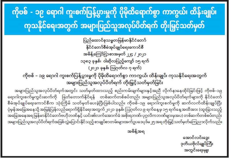 ပြည်ထောင်စုသမ္မတမြန်မာနိုင်ငံတော် Coronavirus Disease 2019 (COVID-19) ကာကွယ်၊ ထိန်းချုပ်၊ ကုသရေးဗဟိုကော်မတီမှ အသိပေးကြေညာချက်