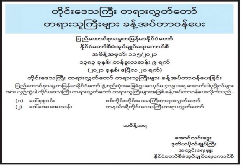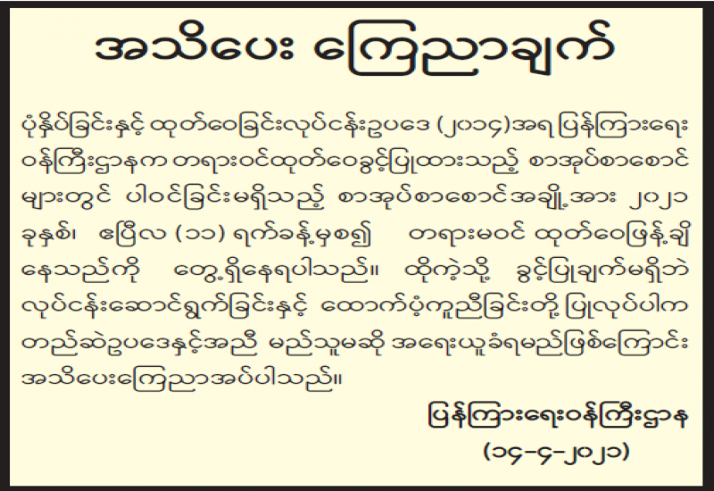 ပြည်ထောင်စုရွေးကောက်ပွဲကော်မရှင်၏သတင်းထုတ်ပြန်ချက် ၂၀၂၁ ခုနှစ်၊ ဧပြီလ ၂၀ ရက်