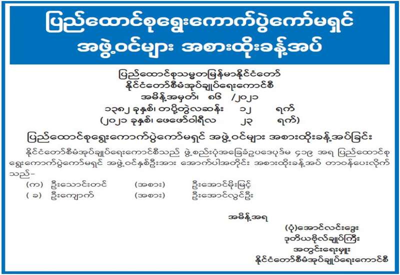 ၁။ မဲမသမာမှုများကြောင့် တပ်မတော်က ဖွဲ့စည်းပုံအခြေခံဥပဒေ (၂၀၀၈ခုနှစ်)နှင့်အညီ နိုင်ငံတော်အားအရေးပေါ်အခြေအနေကြေညာ၍၊ ဖေဖော်ဝါရီလ၁ရက်နေ့မှစပြီး နိုင်ငံတော်တာဝန်အားရယူခဲ့ရပါသည်။