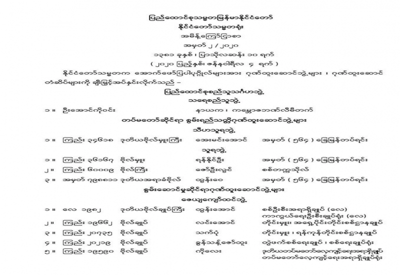 ပြန်ကြားရေးဝန်ကြီးဌာန၊ ပြည်တွင်း/ပြည်ပ ပစ္စည်းများ ဝယ်ယူရေးနှင့် ထုခွဲရောင်းချရေး ကော်မတီအဖွဲ့ တင်ဒါအောင်မြင်ကြောင်း ကြေညာခြင်း
