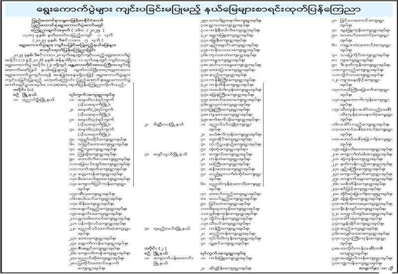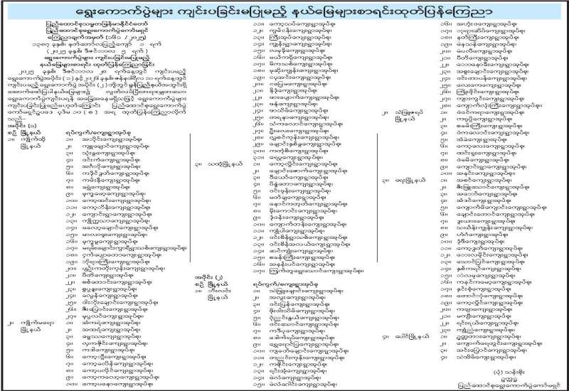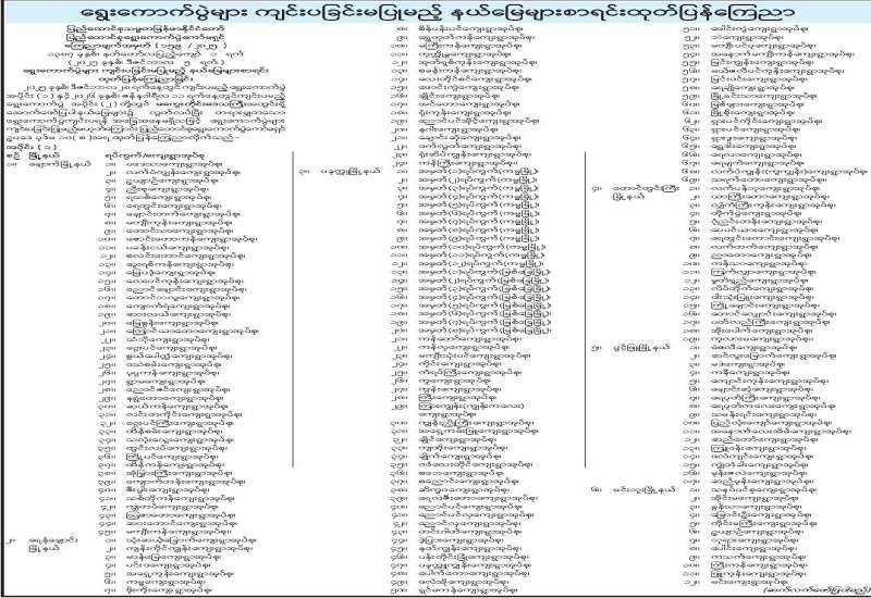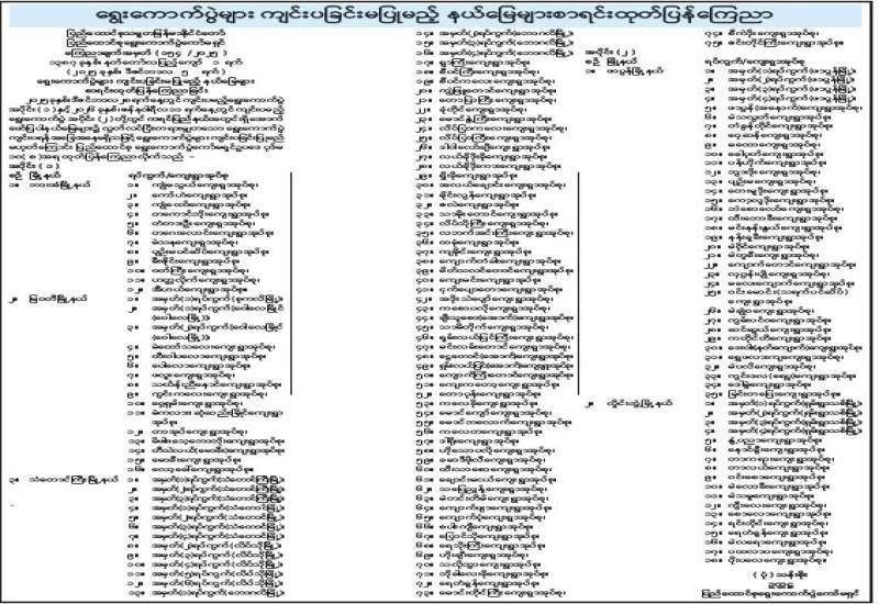 ရွေးကောက်ပွဲများ ကျင်းပခြင်းမပြုမည့် နယ်မြေများ စာရင်းထုတ်ပြန်ကြေညာ