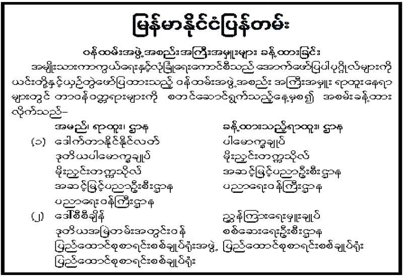 နိုင်ငံတော်အတွင်း နိုင်ငံတော်၏တာဝန်ကို ထမ်းဆောင်လျက်ရှိကြသည့် နိုင်ငံ့ဝန်ထမ်းများနှင့် အငြိမ်းစားဝန်ထမ်းများအတွက် အပိုထောက်ပံ့ကြေး ထပ်မံခံစားခွင့်ပြုခြင်း