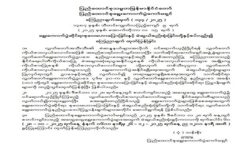 မဲဆန္ဒရှင် ပြည်သူများသို အသိပေးကြေညာ