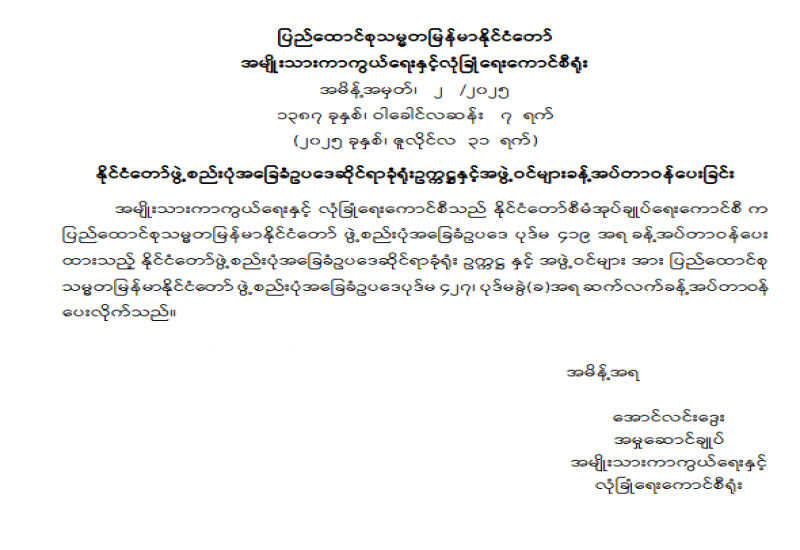 ပြည်ထောင်စုရာထူးဝန်အဖွဲ့ ဥက္ကဋ္ဌနှင့် အဖွဲ့ဝင်များ ခန့်အပ်တာဝန်ပေးခြင်း