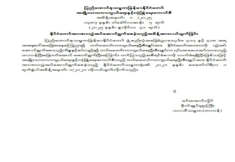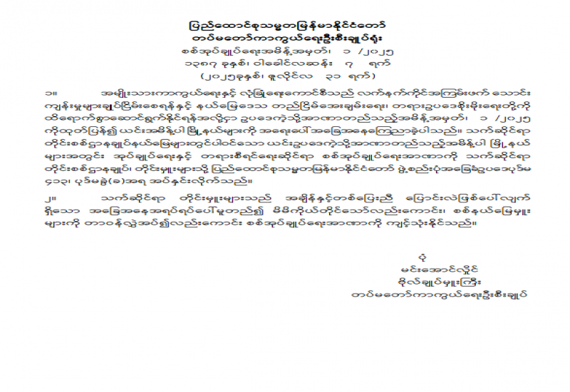အမျိုးသားကာကွယ်ရေးနှင့် လုံခြုံရေးကောင်စီရုံး၏ အမှုဆောင်ချုပ်နှင့် တွဲဖက်အမှုဆောင်ချုပ် ခန့်အပ်တာဝန်ပေးခြင်း
