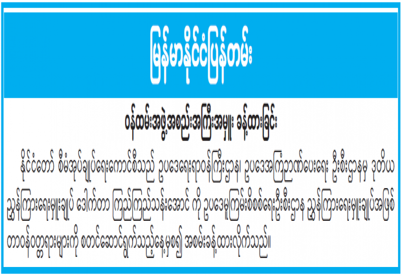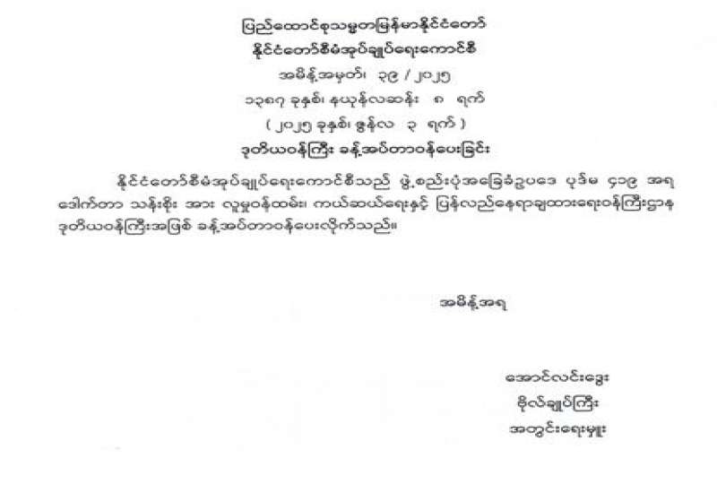 ဒုတိယဝန်ကြီး ခန့်အပ်တာဝန်ပေးခြင်း