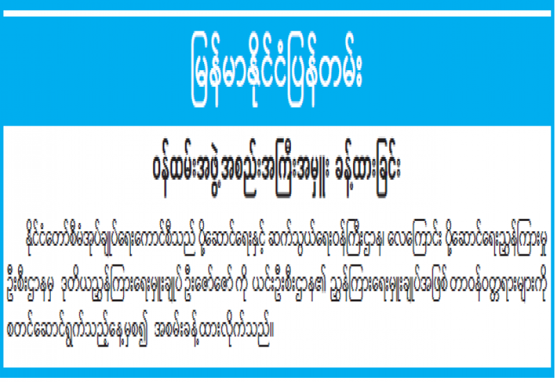 ဝန်ထမ်းအဖွဲ့အစည်းအကြီးအမှူး ခန့်ထားခြင်း
