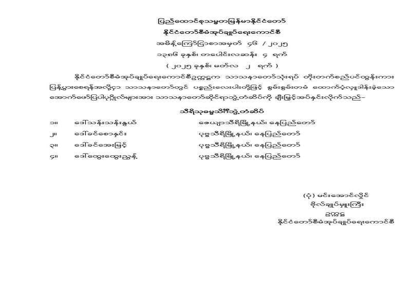 နိုင်ငံတော်စီမံအုပ်ချုပ်ရေးကောင်စီသည် ပို့ဆောင်ရေးနှင့်ဆက်သွယ်ရေးဝန်ကြီးဌာန၊ သတင်းအချက်အလက်နည်းပညာနှင့်ဆိုက်ဘာလုံခြုံရေးဦးစီးဌာနမှ ဒုတိယညွှန်ကြားရေးမှူးချုပ် ဦးဆန်းဝင်းထွန်းကို ယင်းဦးစီးဌာန၏ ညွှန်ကြားရေးမှူးချုပ်အဖြစ် တာဝန်ဝတ္တရားများကို စတင်ဆောင်ရွက်သည့်နေ့မှစ၍ အစမ်းခန့်ထားလိုက်သည်။