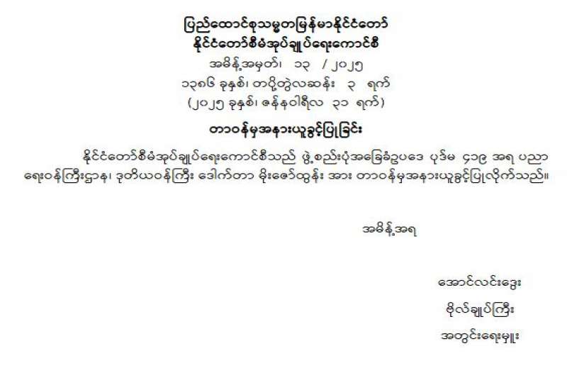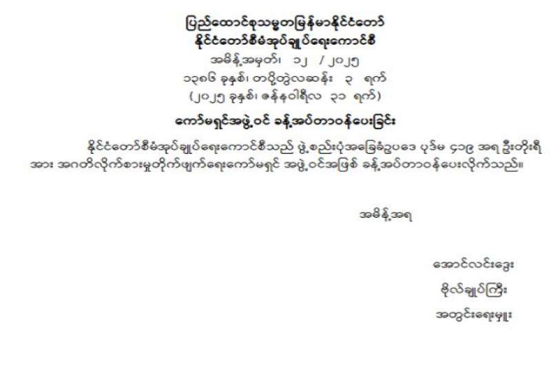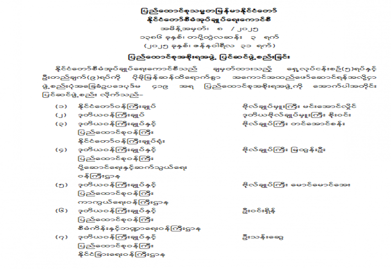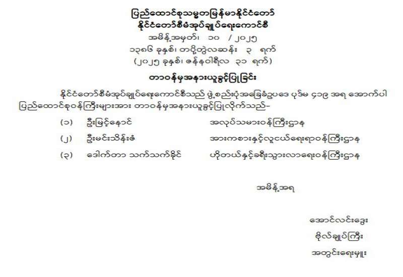 ကော်မရှင်အဖွဲ့ဝင် ခန့်အပ်တာဝန်ပေးခြင်း