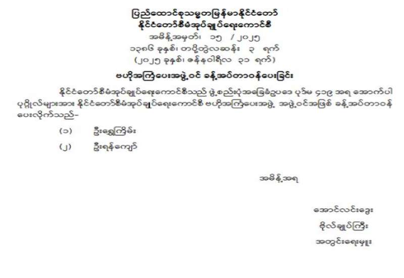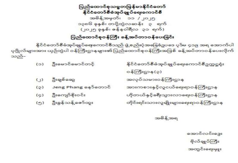 ဗဟိုအကြံပေးအဖွဲ့ဝင် ခန့်အပ်တာဝန်ပေးခြင်း
