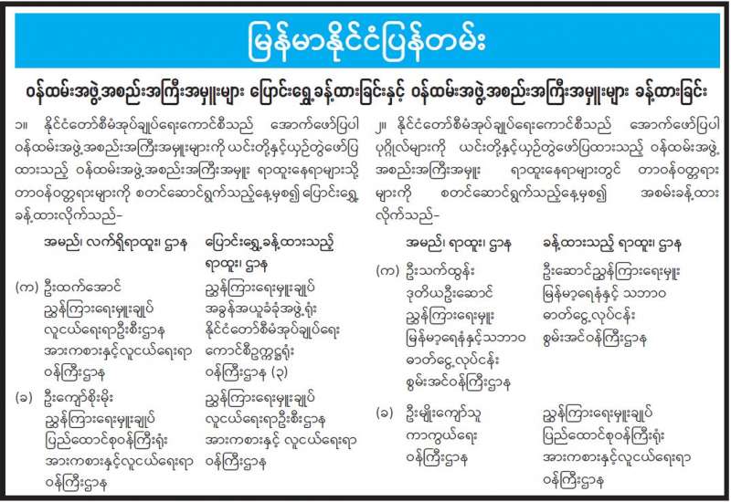 နေပြည်တော်ကောင်စီဝင် ခန့်အပ်တာဝန်ပေးခြင်း