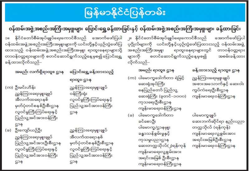 ဝန်ထမ်းအဖွဲ့အစည်းအကြီးအမှူးများ ပြောင်းရွှေ့ခန့်ထားခြင်းနှင့် ဝန်ထမ်းအဖွဲ့အစည်းအကြီးအမှူးများ ခန့်ထားခြင်း