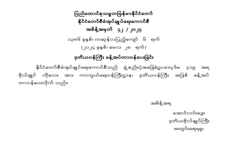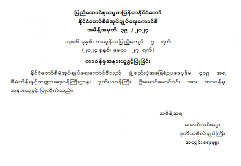 ၁။ ပြည်ထောင်စုသမ္မတမြန်မာနိုင်ငံတော် ၂၀၂၀ ပါတီစုံဒီမိုကရေစီ အထွေထွေရွေးကောက်ပွဲပြီးနောက် ပေါ်ပေါက်ခဲ့သော ပြည်တွင်းပဋိပက္ခများအား နိုင်ငံတော်အစိုးရ၊ တာဝန်ရှိအဖွဲ့အစည်းများနှင့် တည်ငြိမ်အေးချမ်းရေးကိုလိုလားသော တိုင်းရင်းသားပြည်သူများက ဥပဒေနှင့်အညီဖြေရှင်းနိုင်ရေး အထူးအလေးထား ကြိုးပမ်းဆောင်ရွက်လျက်ရှိပါသည်။