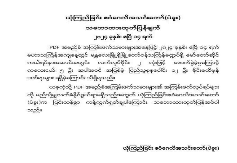 မြန်မာနိုင်ငံ ဧဝံဂေလိခရစ်ယာန်မဟာမိတ်အဖွဲ့ချုပ် သဘောထားထုတ်ပြန်ချက်
