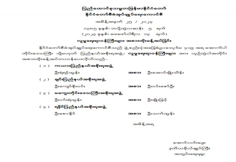 လူမှုရေးရာဝန်ကြီးများ အစားထိုးခန့်အပ်ခြင်း