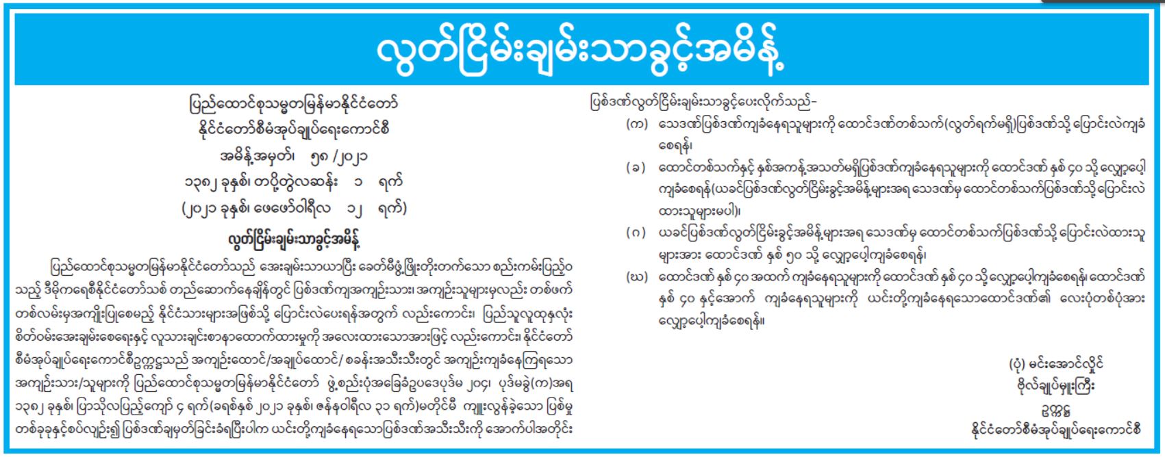 နိုင်ငံတော်အစိုးရ၏ ကြေညာချက်များ