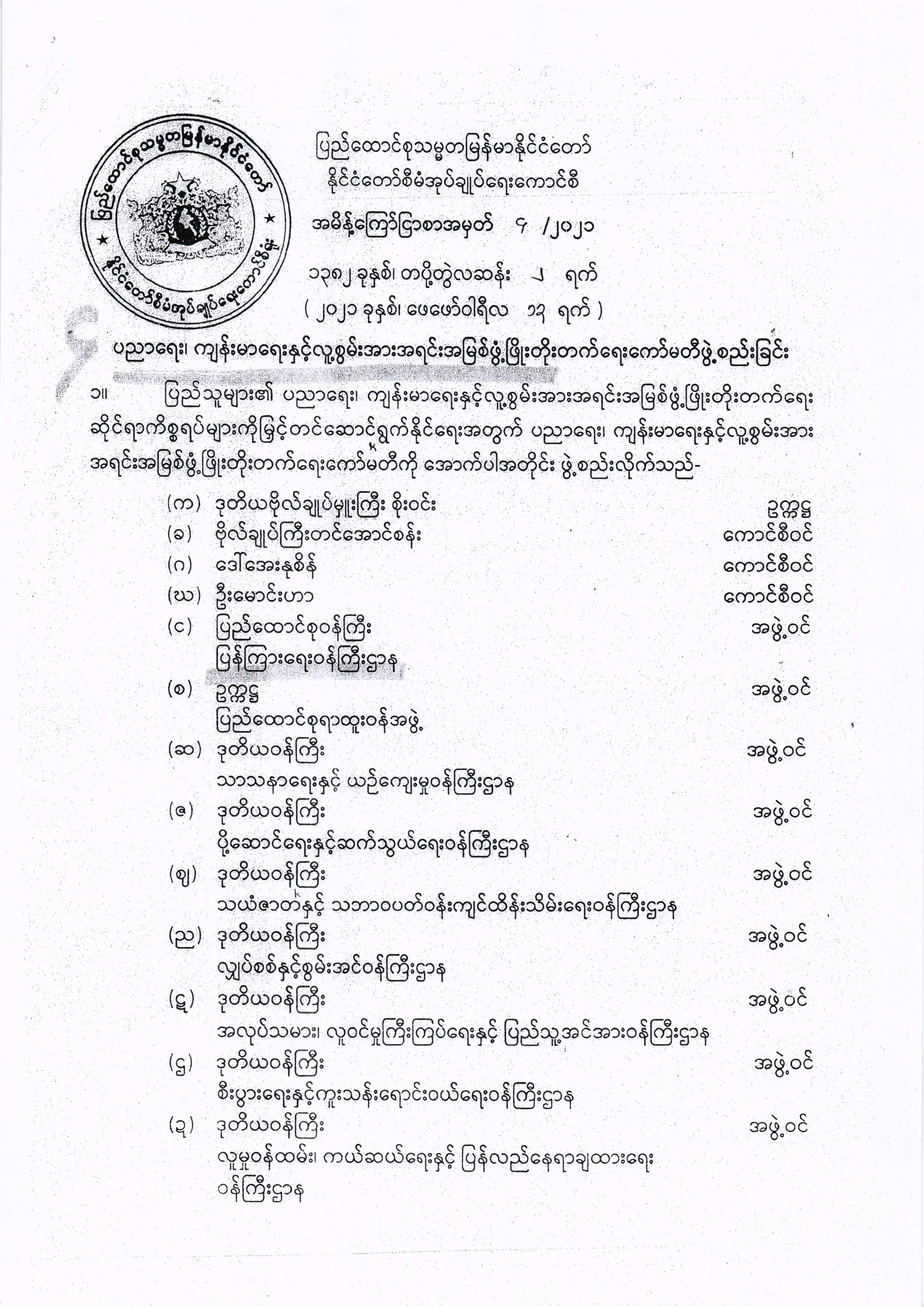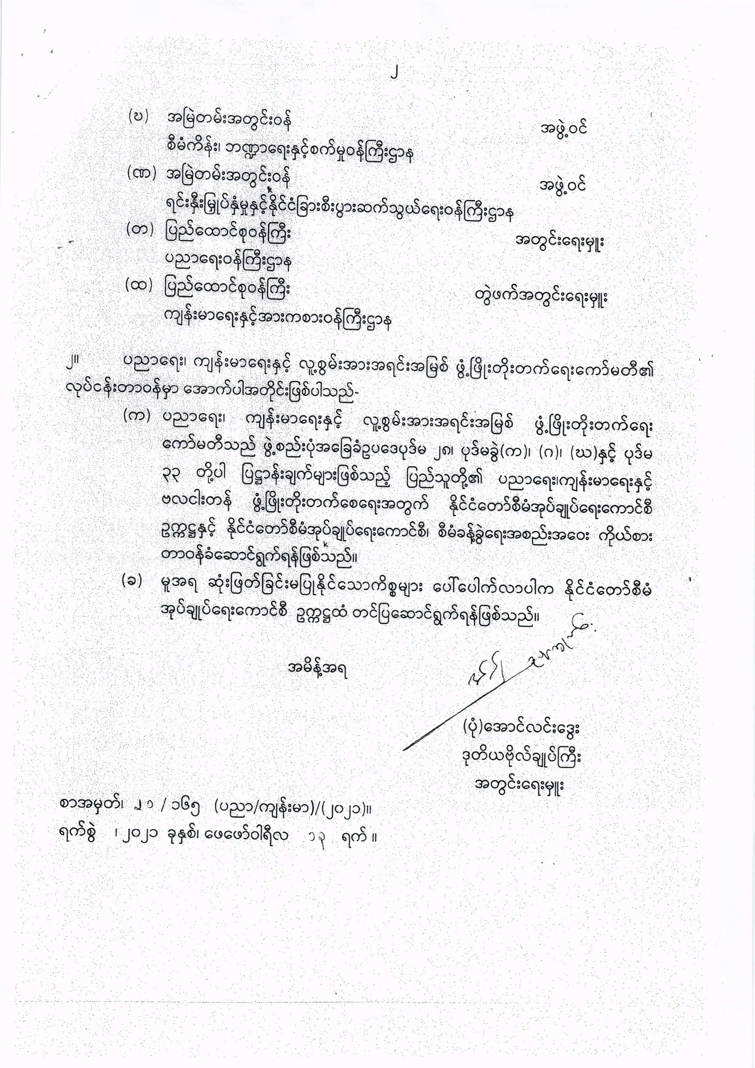 ဝန်ကြီးဌာန ကြေညာချက်များ